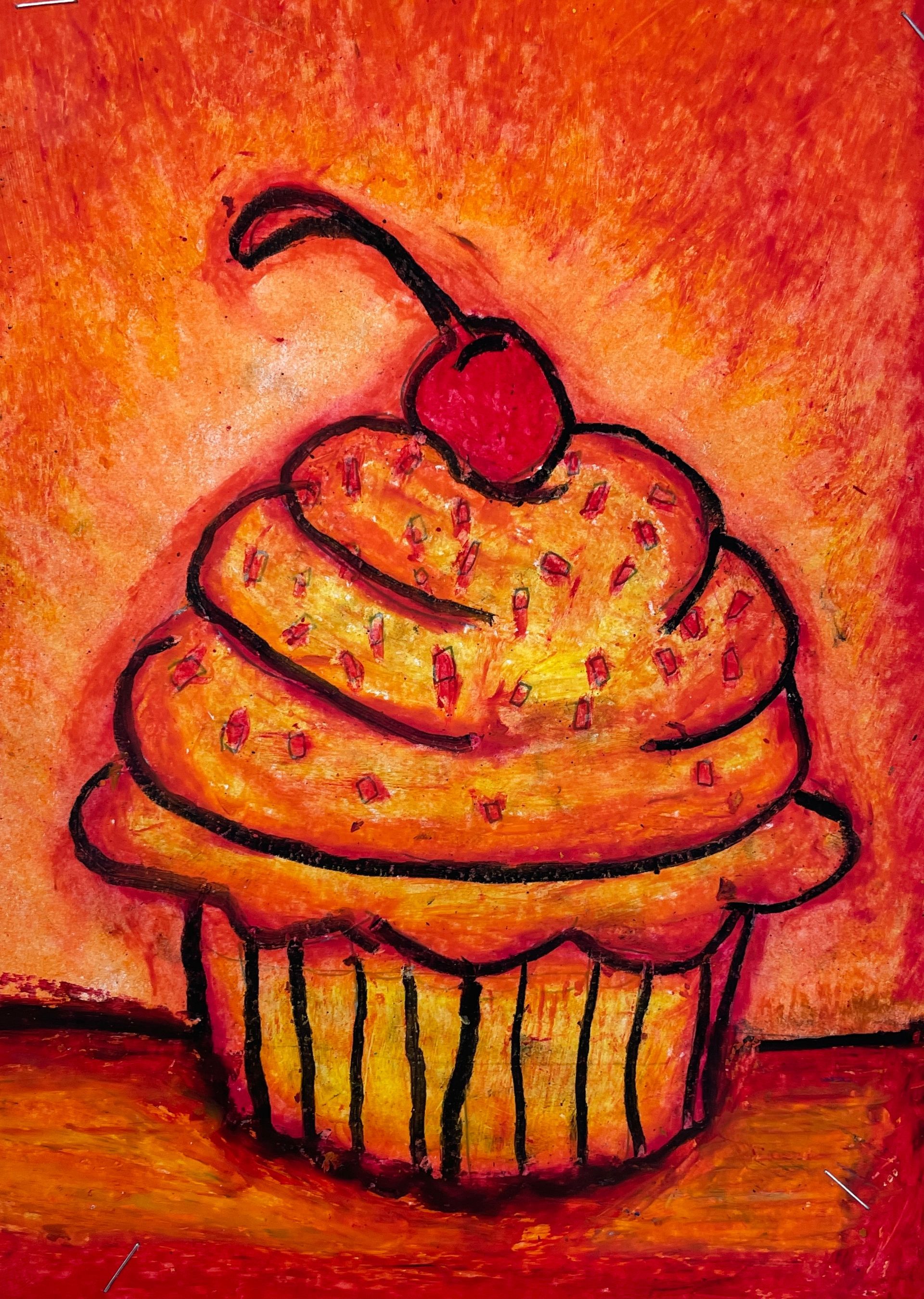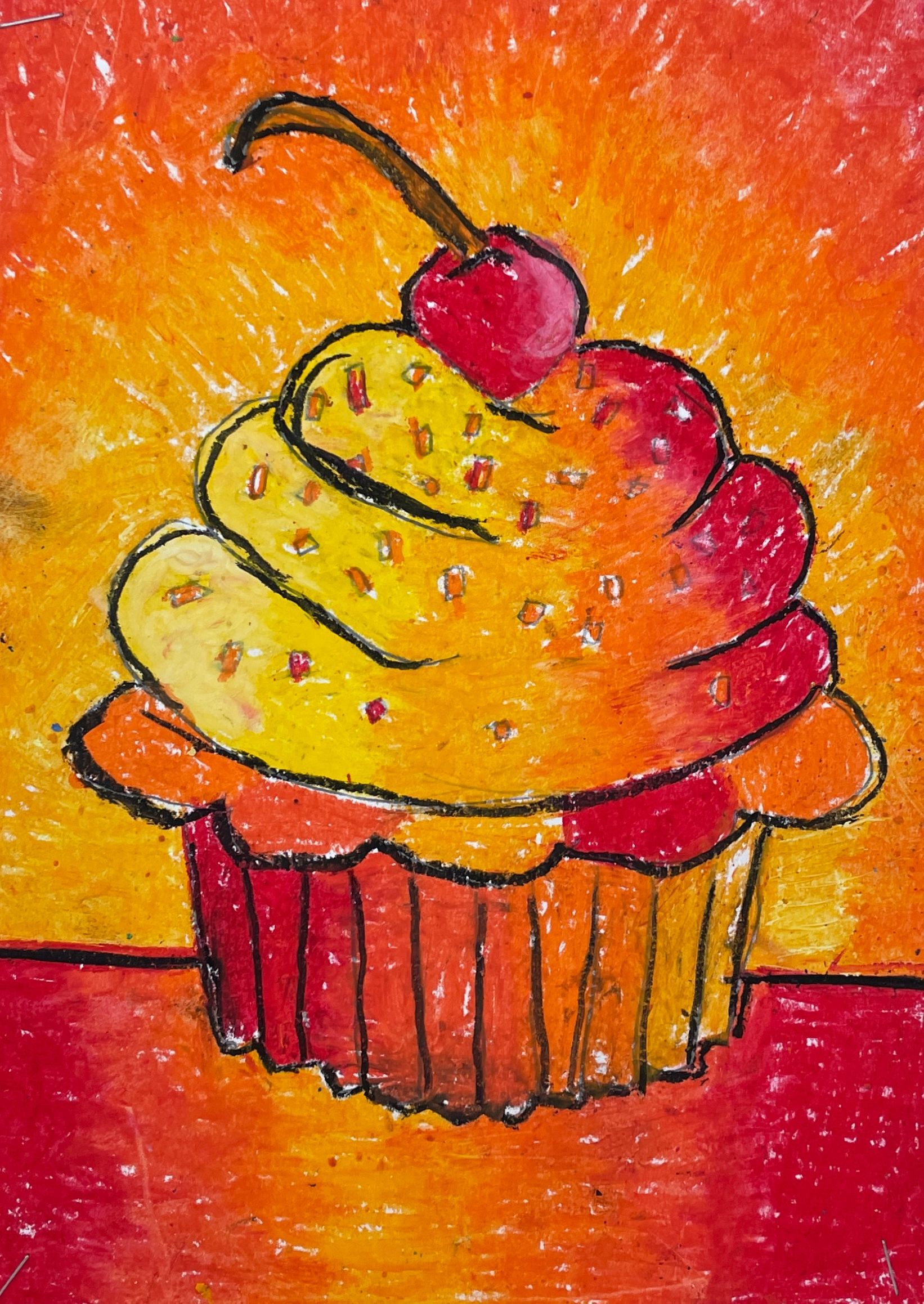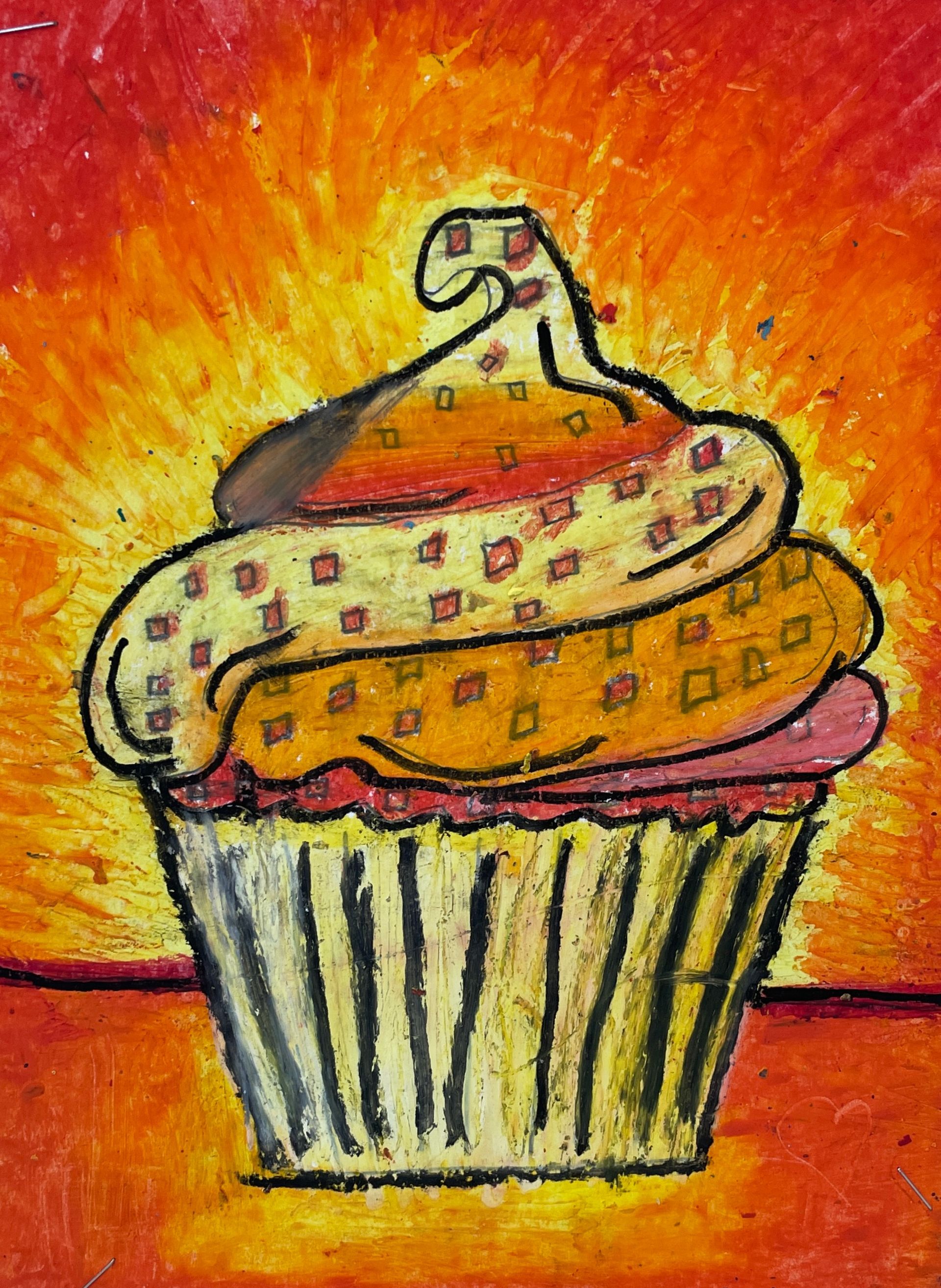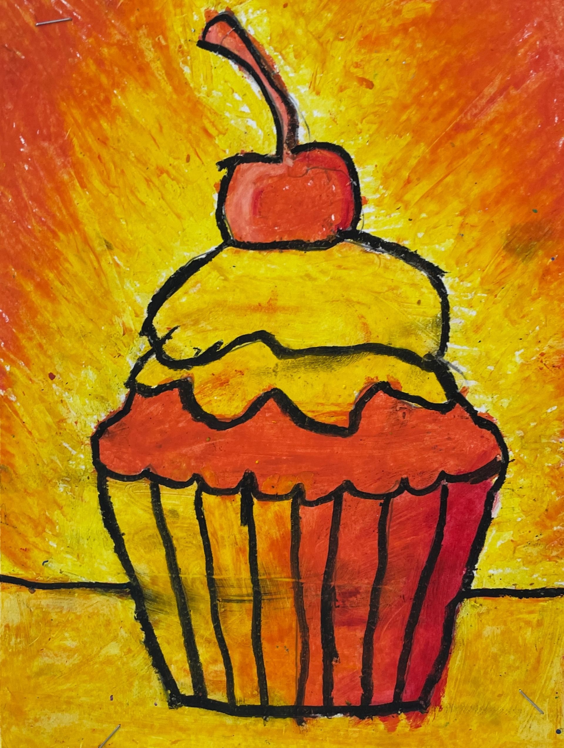3rd grade students learned about Analogous Colors and created cupcakes using oil pastels.