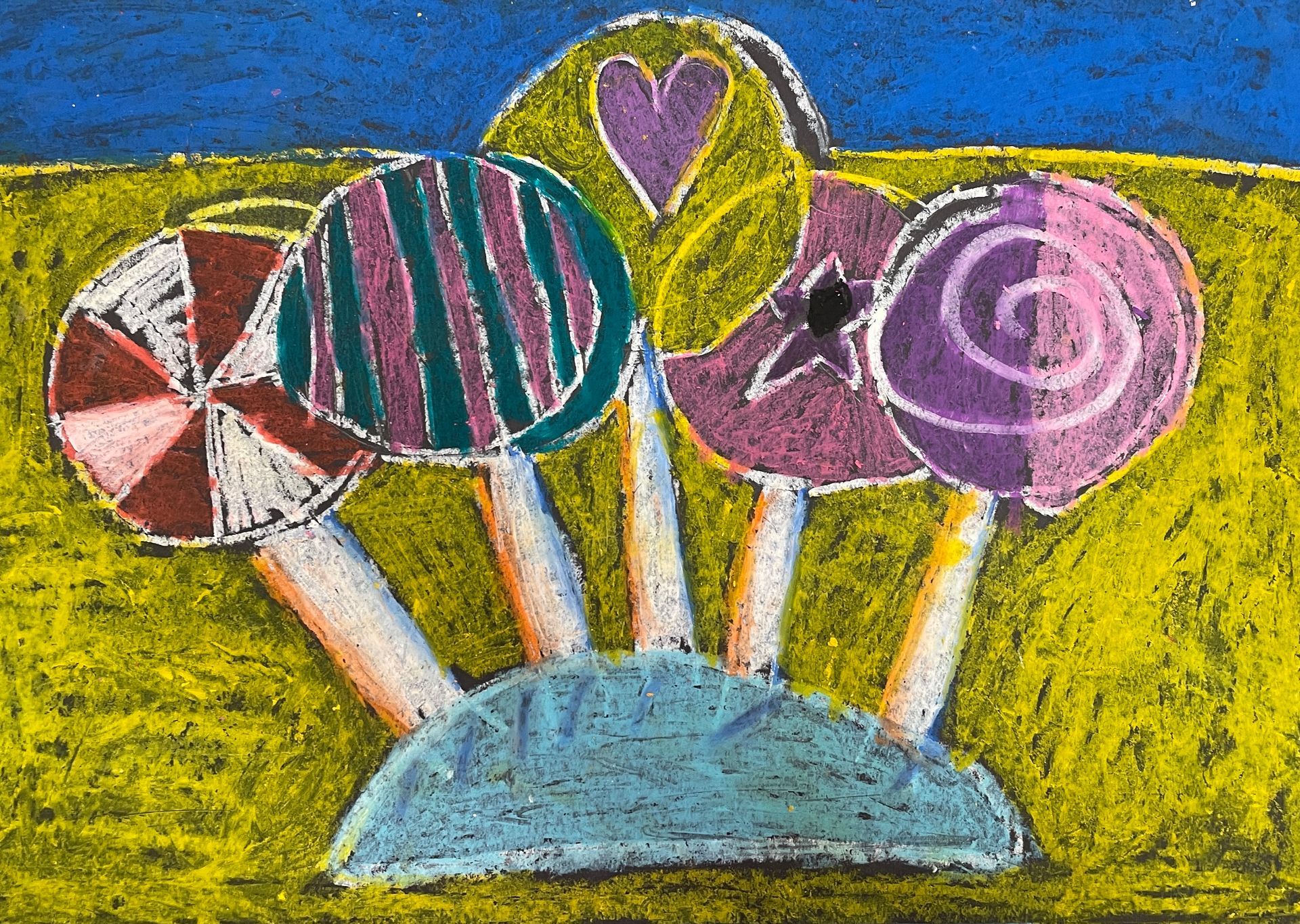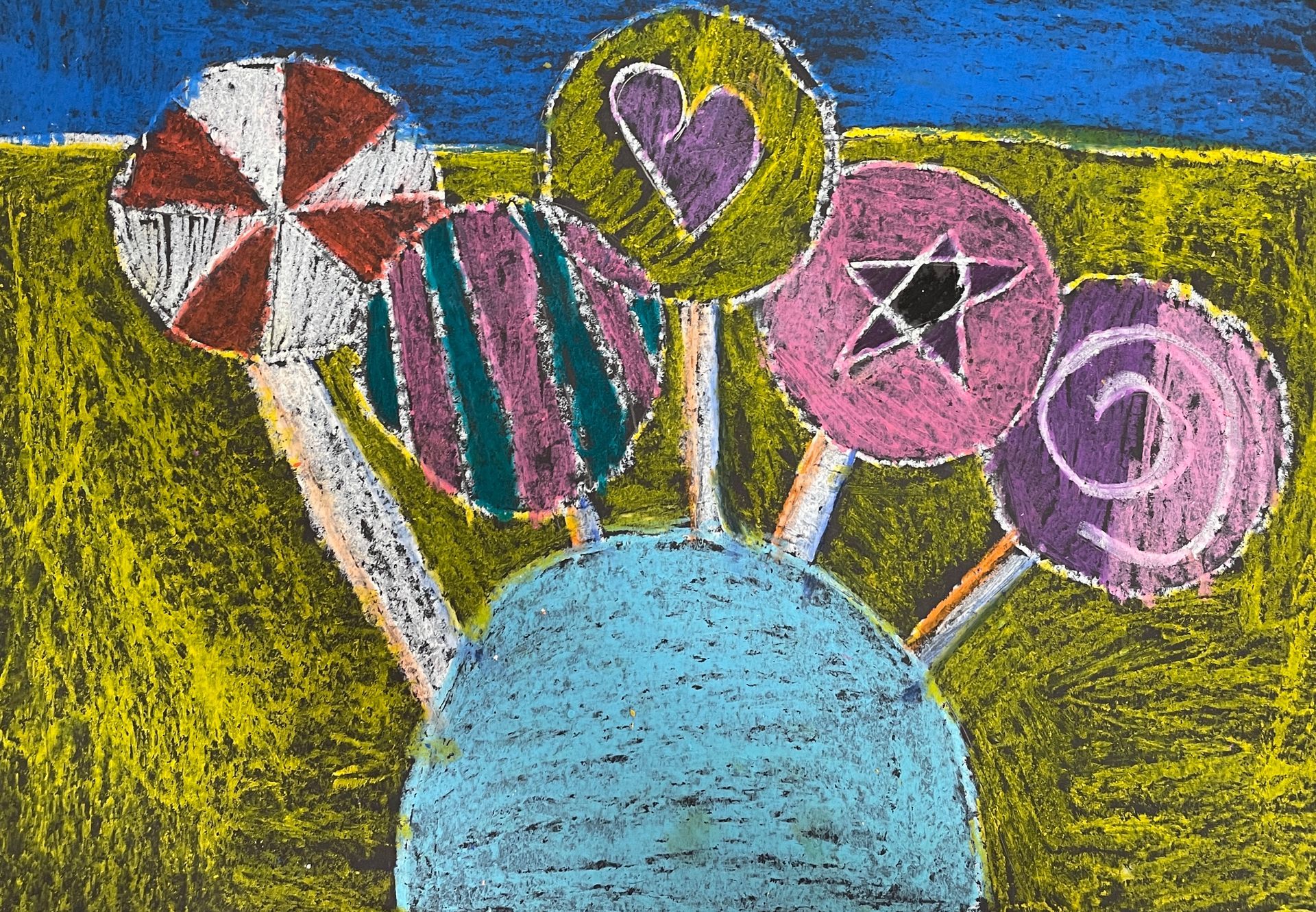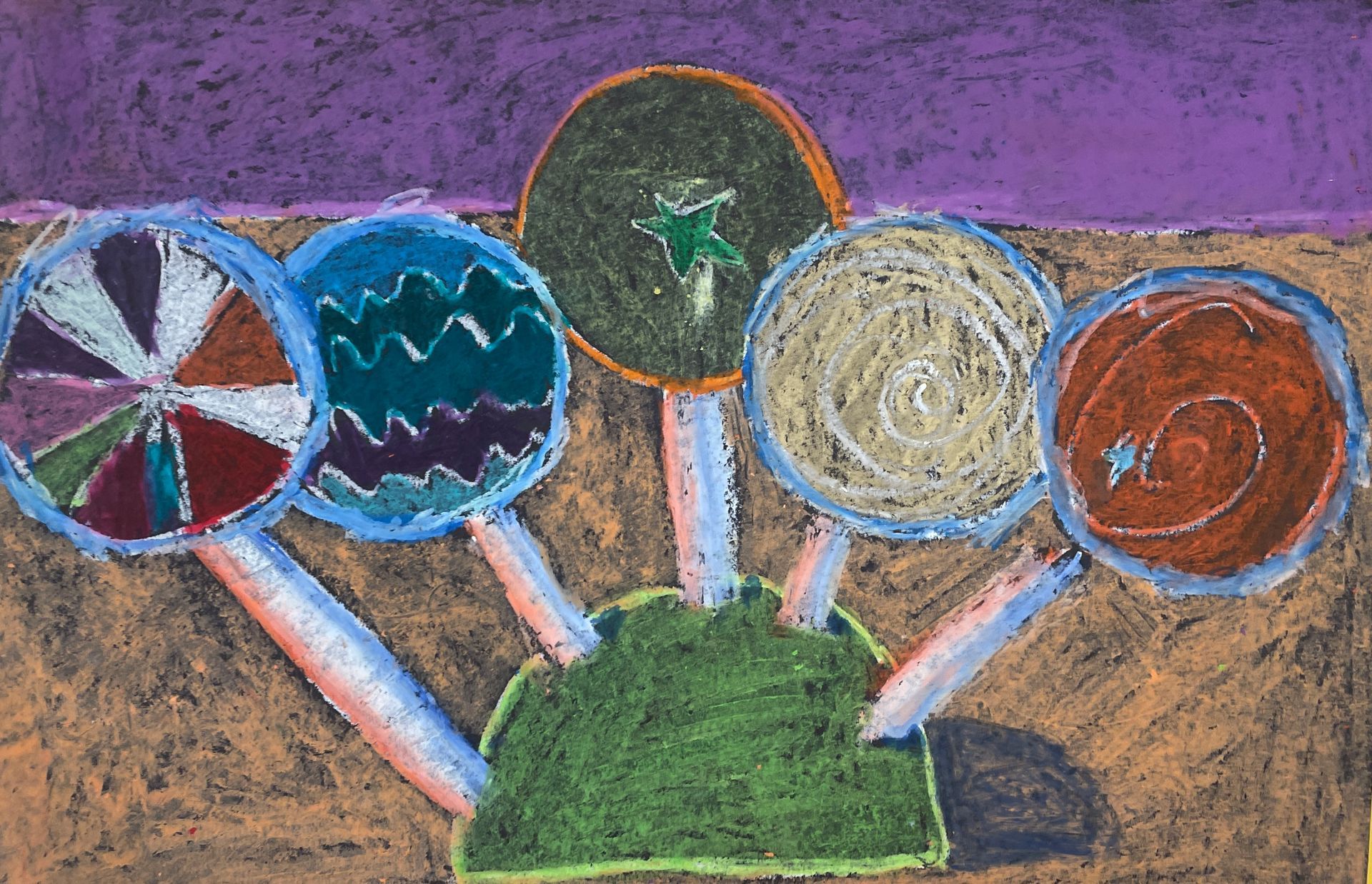 In this 2nd grade lesson, students explore the works of artist Wayne Thiebaud and created their own inspired lollipops by applying oil pastels in his style.