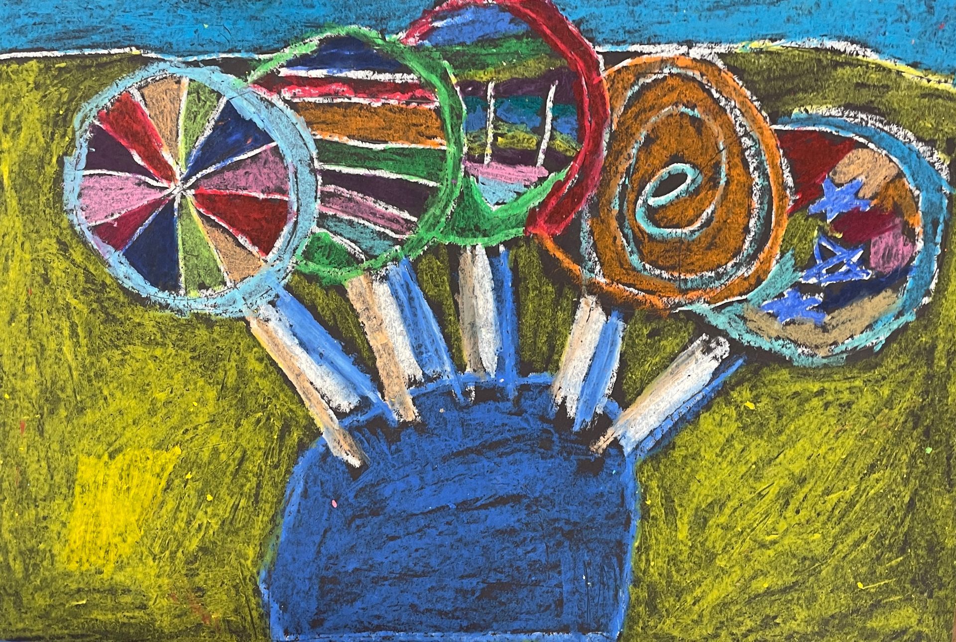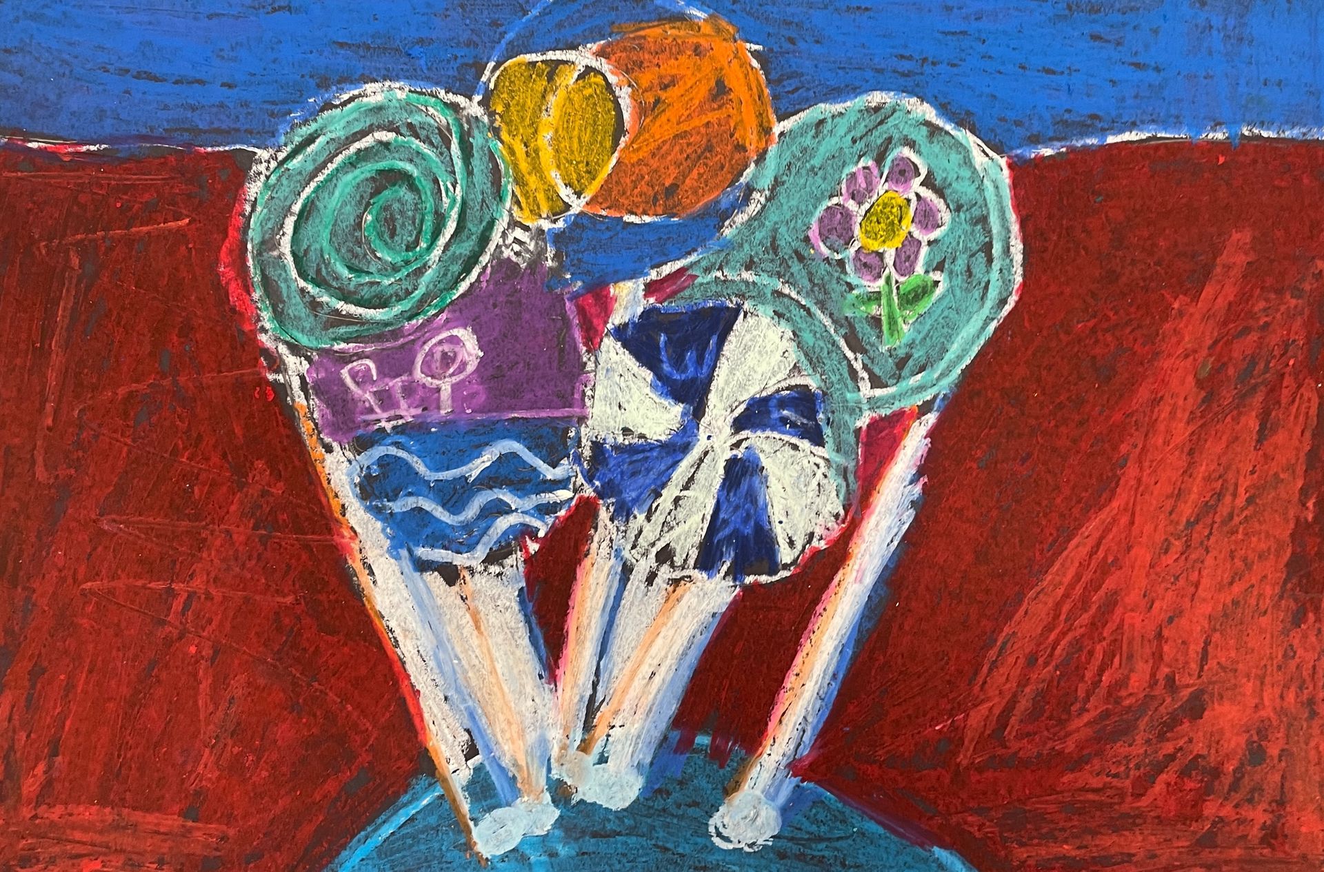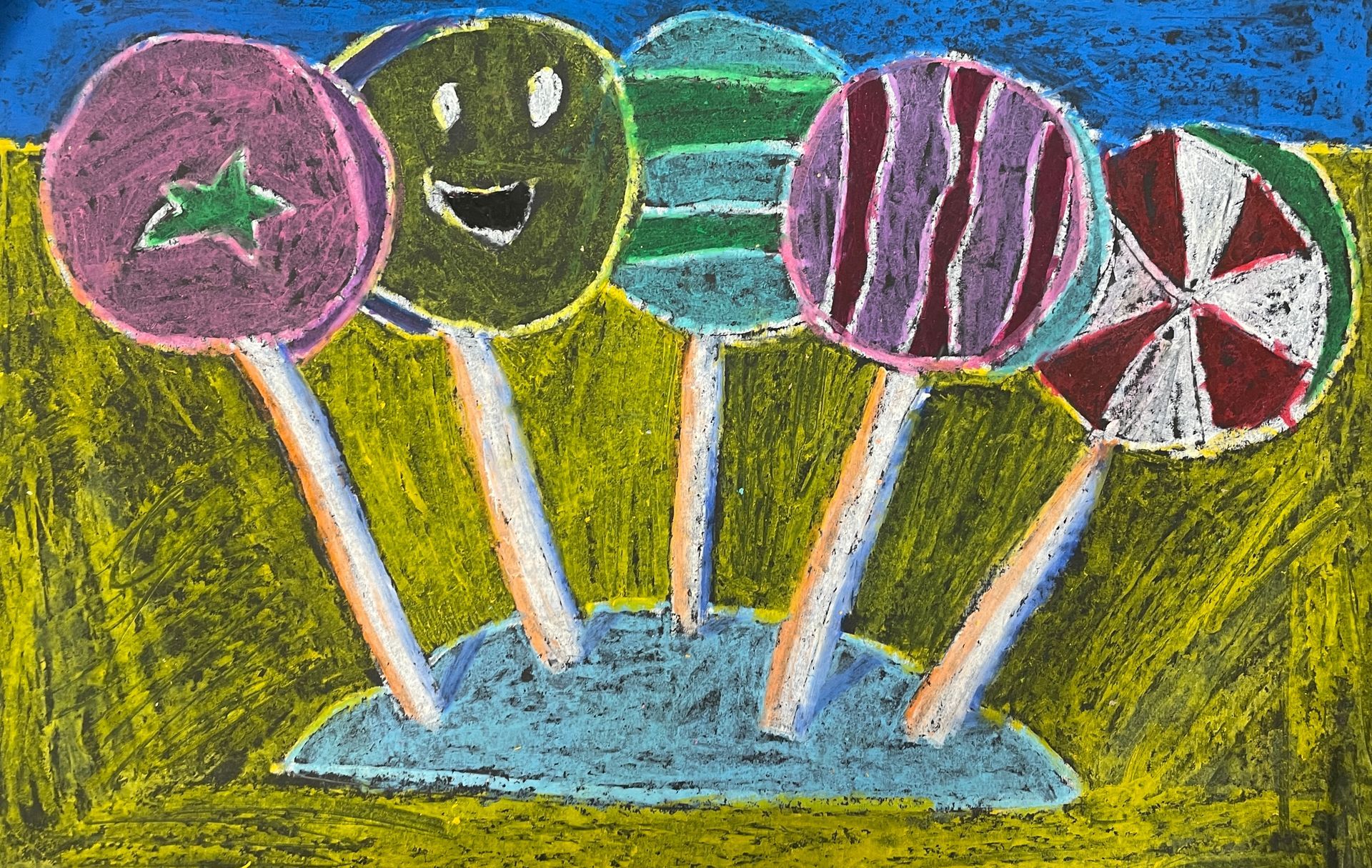 In this 2nd grade lesson, students explore the works of artist Wayne Thiebaud and created their own inspired lollipops by applying oil pastels in his style.